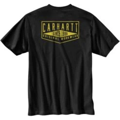 For over a century, Carhartt has produced rugged workwear to help people tackle the toughest jobs. This men′s short-sleeve tee is a nod to the legacy. Soft yet durable, it′s made of midweight cotton or cotton/poly blend and features Carhartt graphics..