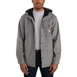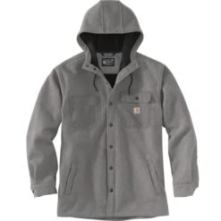 Keep it moving through light rain, wind, and cold. This men’s shirt jac is a rugged layer for days when you need full coverage and full range of motion. The heavyweight twill is fleece-lined for warmth and has a roomy three-piece hood. There are two chest pockets for essentials as well as two handwarmer pockets in front.