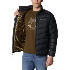 Recycled synthetic down insulation and a pop of gold thermal-reflective lining keep you toasty on cold hikes.The synthetic insulation squishes down for easy packing without losing loft, and it stays warm even when wet. Varied baffles and a mix of fabric finishes sets this puffer apart.