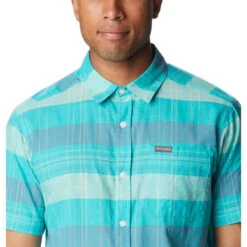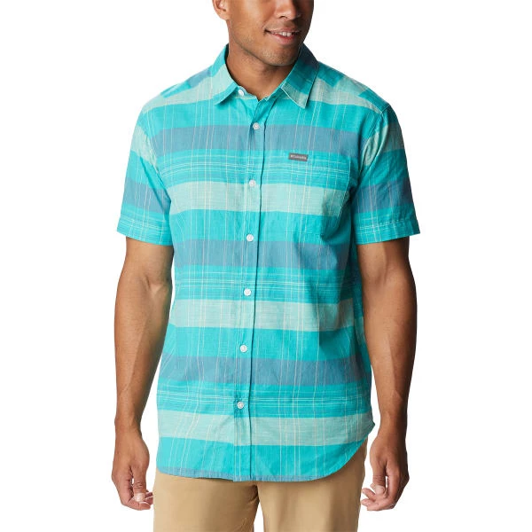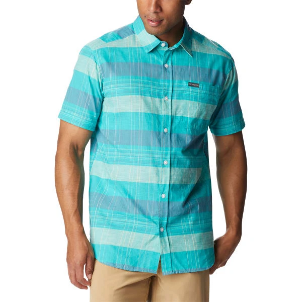 This lightweight button-down shirt features a chest pocket and is crafted with sweat-wicking, adventure-ready fabric.