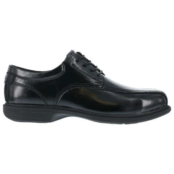 A versatile, classic dress shoe comes with enough features for everyday wear. A square-toe, black leather style offers EVA cushioning and then protects you with a slip-resistant sole.