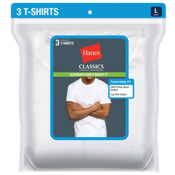 Hanes crew neck tees with lay flat